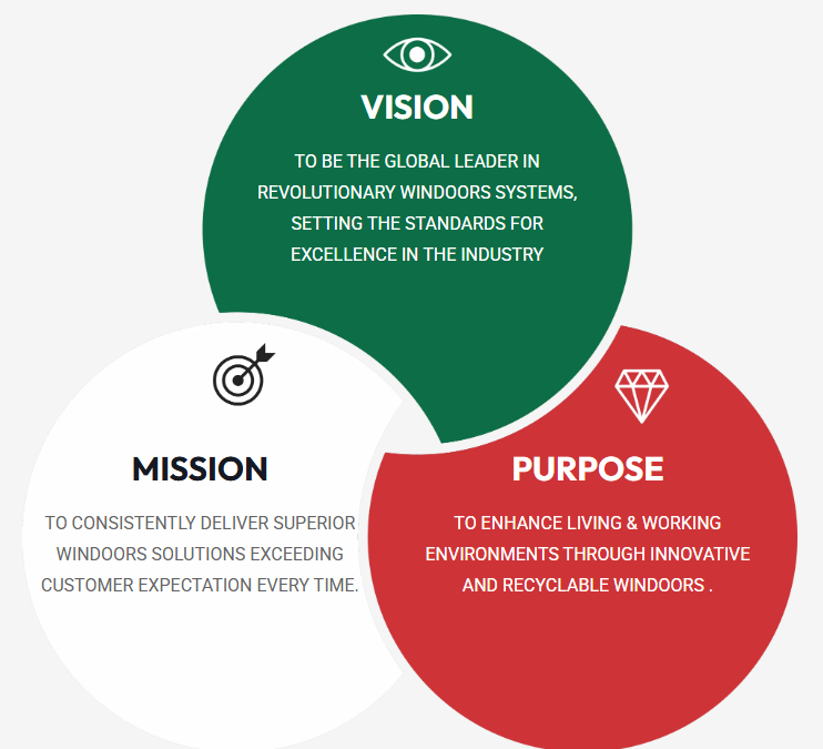 TO ENHANCE LIVING & WORKING ENVIRONMENTS THROUGH INNOVATIVE AND RECYCLABLE WINDOORS .